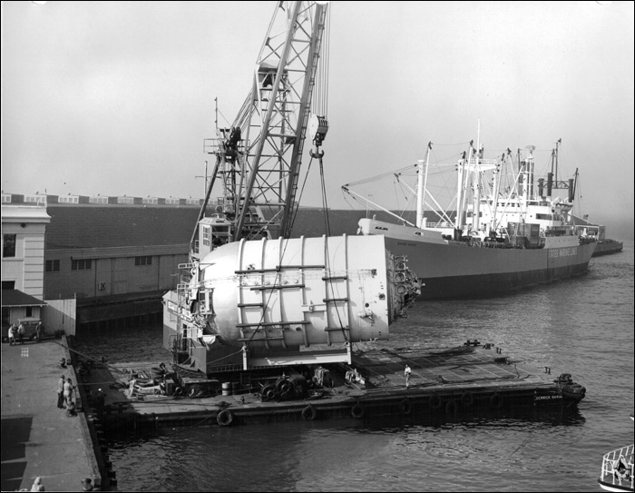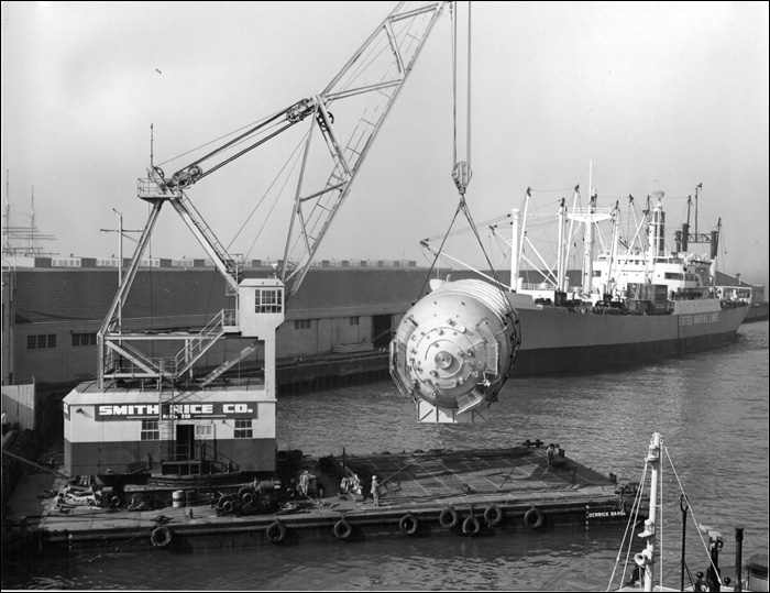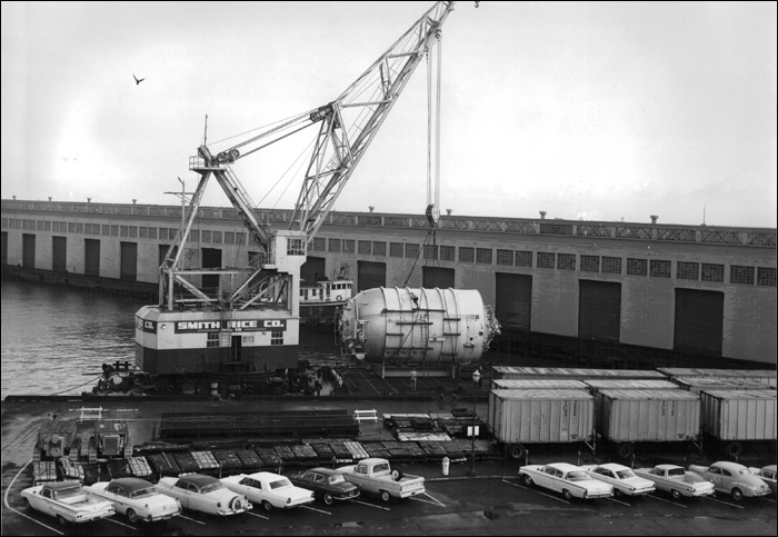 where the S-IVB battleship stage is being loaded for a trip to New Orleans. ...
