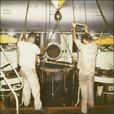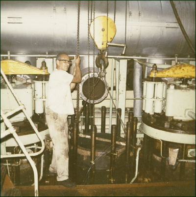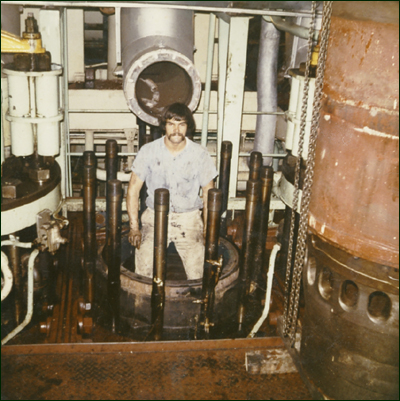 the engine ourselves, whenever we hit a port. I remember being in Siagon and